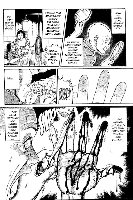 Mulai dari sini yang bekas lukanya tadi berbentuk bulan sabit, sekarang berbentuk spiral